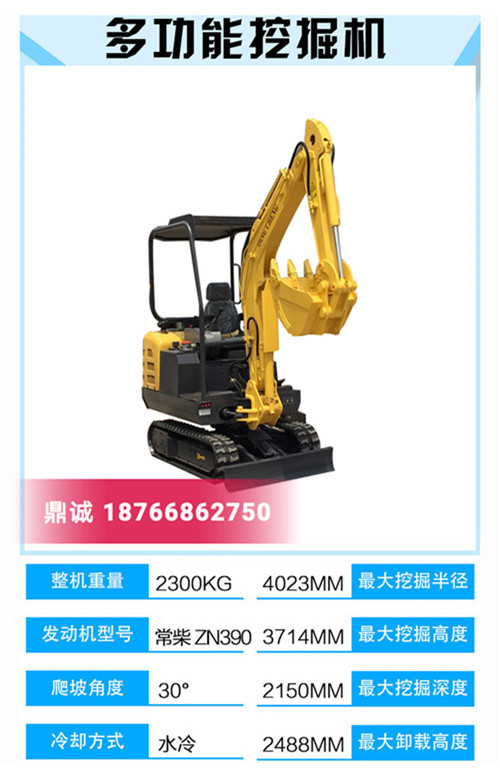 鼎诚23型履带式挖掘机技术性能参数: